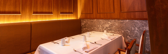 贅沢な雰囲気の半個室で、クラシカルな欧風料理を楽しめる「プリフィクスコース」。冷製オードブルには、生ウニのコンソメジュレや特選牛肉のさしみが、温製オードブルには、グリーンアスパラガスのチーズソースグラタンや殻入りエスカルゴのブルゴーニュ風が楽しめます。スープはじゃがいもの冷製ヴィシソワーズや野菜のポタージュ、コンソメスープなど。メインディッシュは特選黒毛和牛炭火焼きステーキ または 元祖レモンステーキから選択。最後は手作り自家製パンとデザート、コーヒー または 紅茶で、完璧な食事を楽しめます。